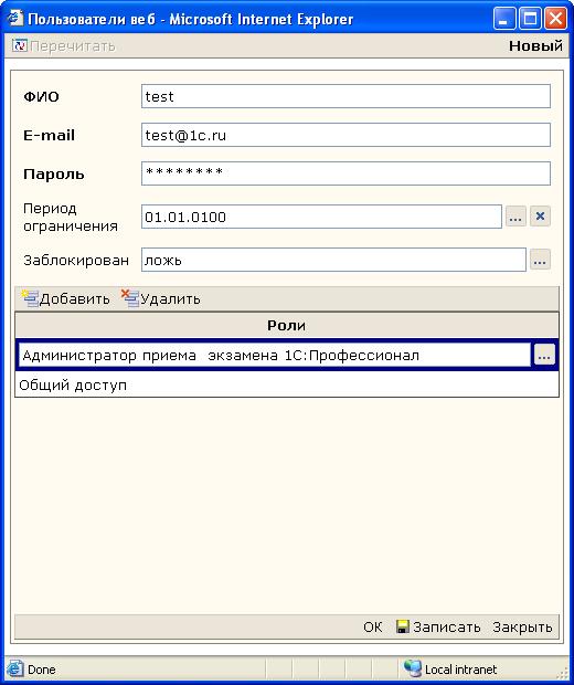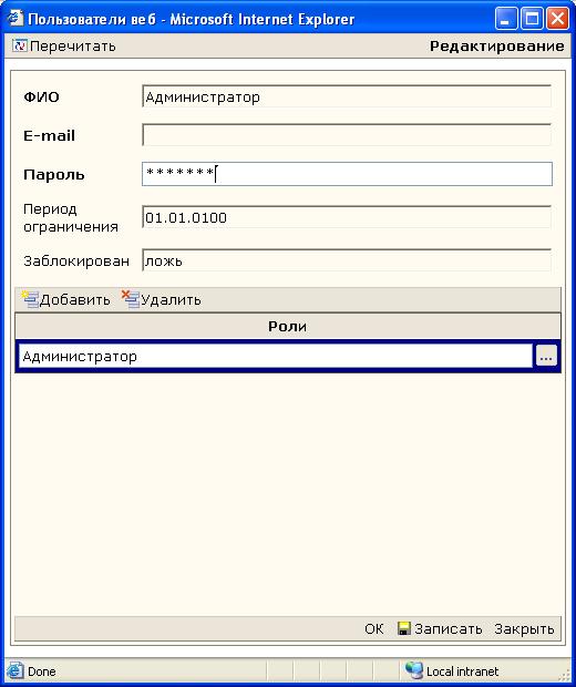 присвоения соответствующих ролей.